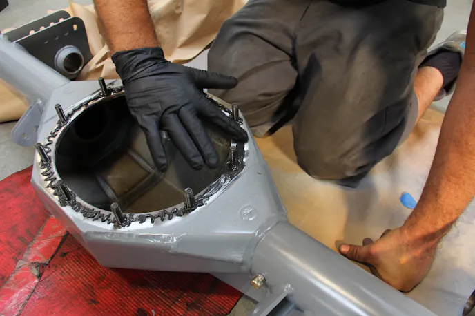 The actual FAB 9 rearend housing is engineered to accept all 9-inch Ford-style differentials. These housings include a fully-welded center section with internal gussets, 3-inch axle tubes, and Ford big-bearing late-model Torino or small-GM housing ends. We chose to go with the Torino housing ends for different brake options. All of the housings are manufactured in-house utilizing Chassiswork’s state-of-the-art robotic spray-arc welder. Weld penetration, and quality are absolutely outstanding and will provide consistent, reliable performance. The center sections are fully CNC-machined after welding to provide an excellent third-member-seal surface and extremely tight tolerances on the remaining housing features.