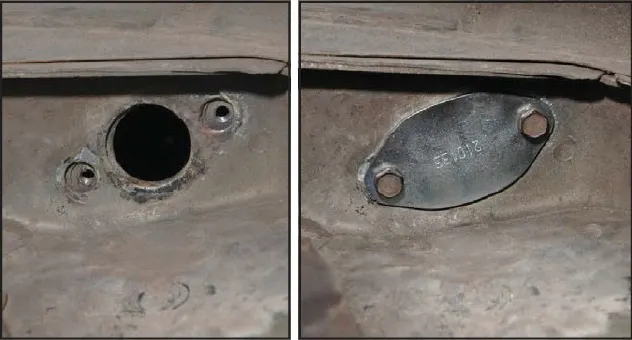 Our crew then marked the weld-prep areas onto the undercarriage by scribing guidelines onto the surface of the framerail. It was important to scribe the overall outline of the bracket, the holes along the inside of the framerail, and finally the eight oval holes along the bottom of the framerail. The bolt holes were scribed so that 3/8-inch diameter holes could be drilled along the bottom of the frame rail.