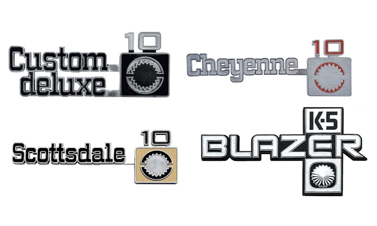 • Includes Custom Deluxe, Cheyenne, Scottsdale, Silverado, and K5 Blazer emblems