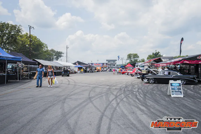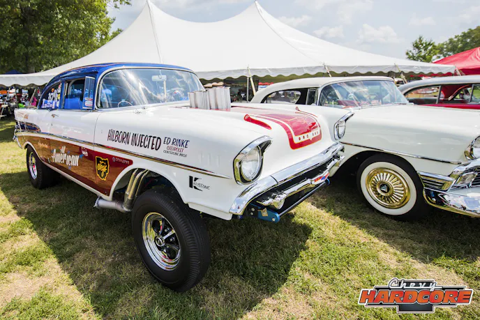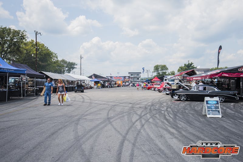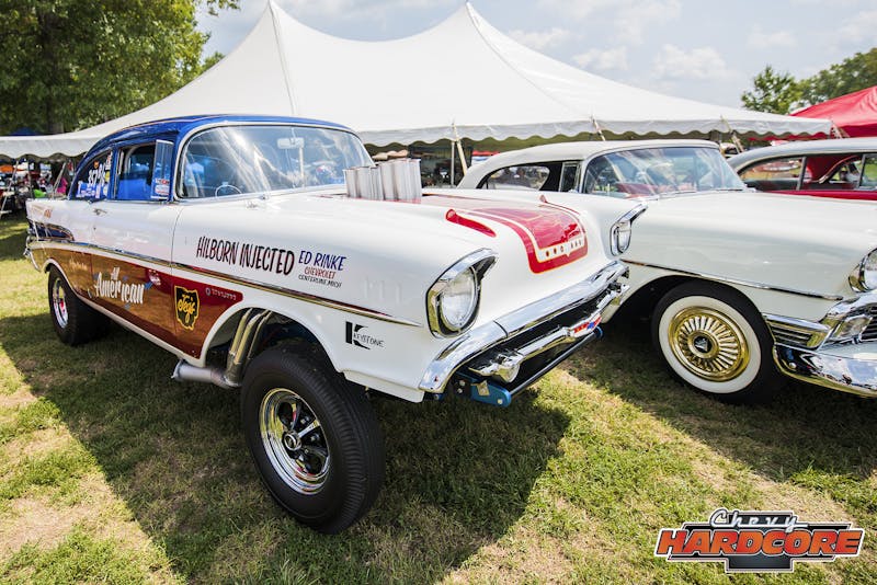 Whether the ’55, ’56, or ’57 Chevy car or truck is your favorite, you were sure to find one to stop you dead in your tracks. It didn’t matter whether your taste revolved around restored, patina covered, custom, gasser, Pro Touring, or Pro Street cars. It was on the grounds, and there were scads of them to check out. Maybe you’re interests lean a little more toward quarter-mile racing? Along with all of those show participants, there were even hundreds of cars melting tires on the dragstrip, each grappling to take home bragging rights and prize money. Let’s not forget the display cars that filled the numerous vendor’s booths. be it new parts or that elusive piece of trim not re-popped, if you looked hard enough through the vendor and swap meet area, you could probably build a car.
