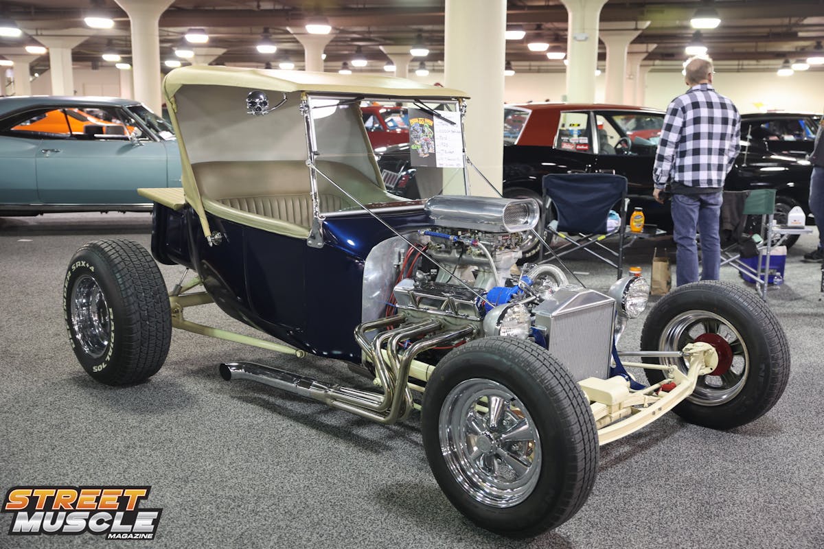 Jason Steeves brought his “Dirty Dandelion” 1927 Chevy Coupe to the show and boy it drew a crowd. Sussex Engines built the cool 1955 354 cubic-inch Hemi mill that’s backed by a Super T-10 transmission. The House Of Kolor Pagen Gold Candy Silver Flake and Pear White paint just make the Dirty Dandelion pop. Metal Coaters created some amazing chrome parts that work in unison with the wild paint. The entire package was put together by the craftsman at Binbrook Speed & Custom.