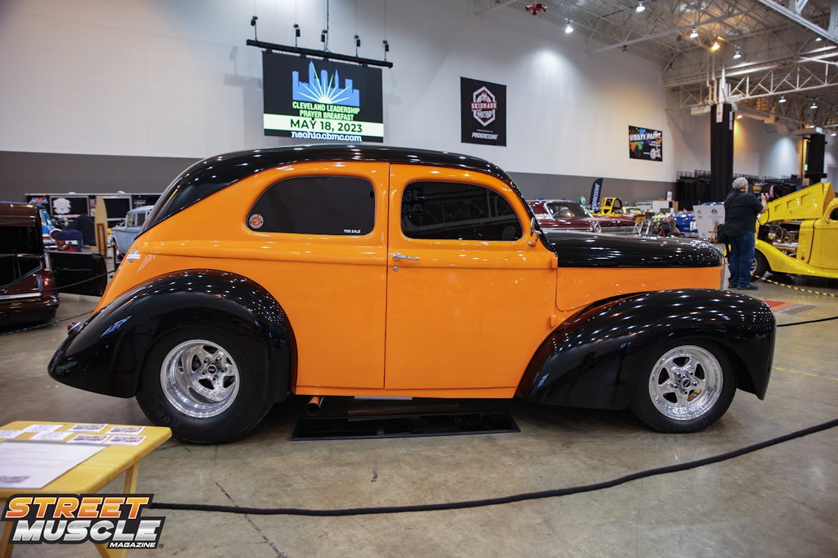 “Showtime” is a 1938 Ford Coupe that’s owned by Joe and Michel Ischkum. Charles Huff sprayed the Ford in PPG’s Orange Radiance over a deep black base. J.L Johnson created Showtime’s custom interior. The Ford is powered by a 441 cubic-inch big block Chevy that was built by Jim Brower and features a cool chromed 502 Ram Jet intake. Showtime rides on a custom chassis and Air Ride Technologies suspension.