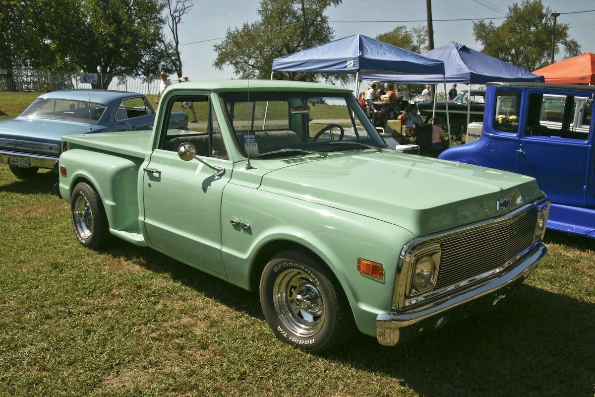 Under the hood a 462 cubic-inch big-block with 525 horsepower uses a solid-lifter camshaft and twin carburetors. CPP disc brakes were mounted on the front, and factory drum brakes are retained on the rear. An Air Ride suspension was installed, and the air compressor and tank were tucked under the bed. A staggered set of 18- and 20-inch American Racing wheels sit nicely inside the truck’s fenders to complete the great look.