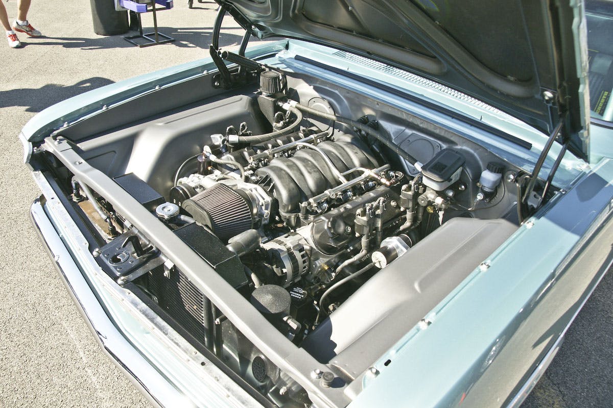 A 9-inch rearend and Wilwood disc brakes with cross-drilled and slotted rotors bring the car to a halt. A staggered set of 18×8 and 20×12-inch billet Intro wheels with Michelin Pilot performance tires.