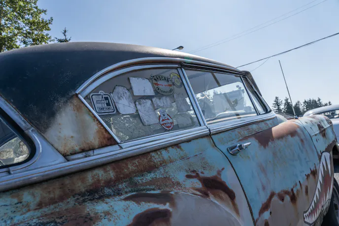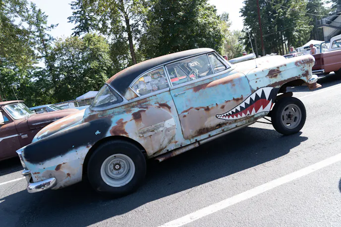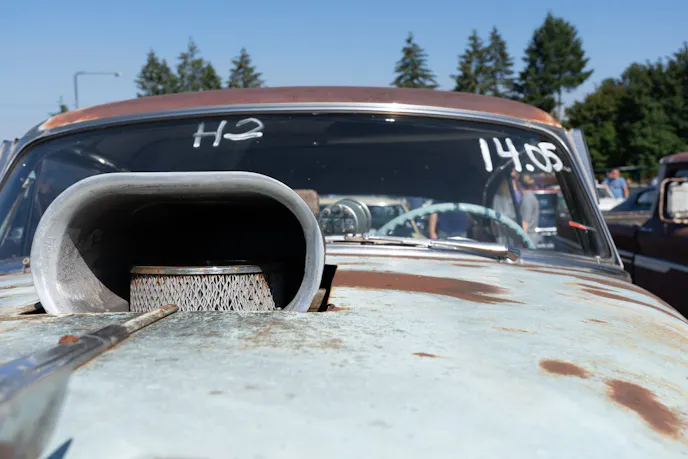One of the coolest hot rods we ran across was Tony Lambert’s 1954 Bel Air. While it looks like a vintage build put together back in the ’60s or ’70s, Tony built this racer about 15-years ago. The paint is mostly original, and the race decals were aged the old fashion way. “I let mother nature do most of the work,” Tony said. “I let it sit outside.”