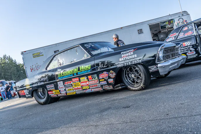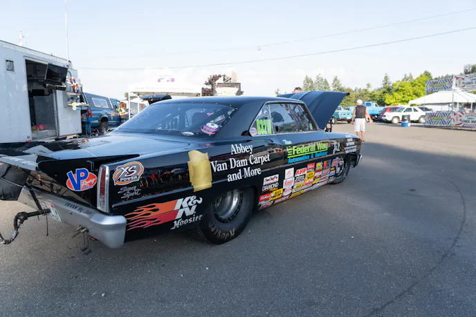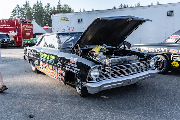 This Nova caught our eye on the track, and we were able to catch up with owner Allen Machan of Everett, Washington, later that evening when he was finishing up for the day. Powering this beast is a 555 cubic-inch Dart big block hooked to a thoroughly built Powerglide transmission with a Hughes converter. The drivetrain is finished with a 4.11-geared 9-inch rearend.