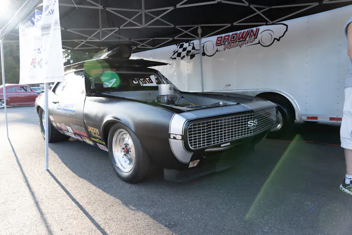 Randy has owned the car for 7 years, and it features a 565 cubic-inch big-block Chevrolet engine. It’s naturally aspirated and fueled by a Dominator carburetor. The transmission is a Powerglide, built with a manual-shift valve body and a Hipster transbrake. The rearend is a 9-inch with 4.33 gears and a spool. “It’s a cool car,” Randy said. “And we love bringing it out to this event.”