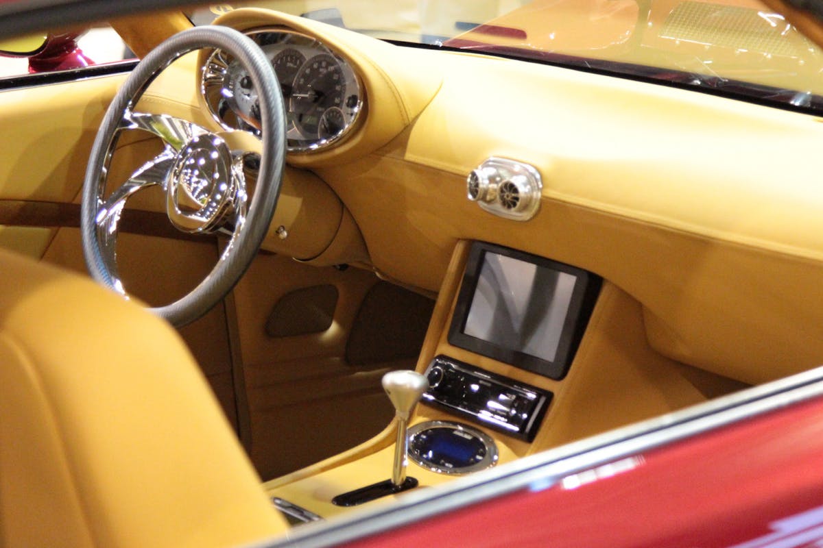 The interior was completed by Gabe’s Custom Interiors, and if you’ve been around the show car world, you know his work is some of the best. The interior caught our eye because of all the custom touches; the billet switches, the trick wiring harness/fuse block under the rear seat, and the gauges.