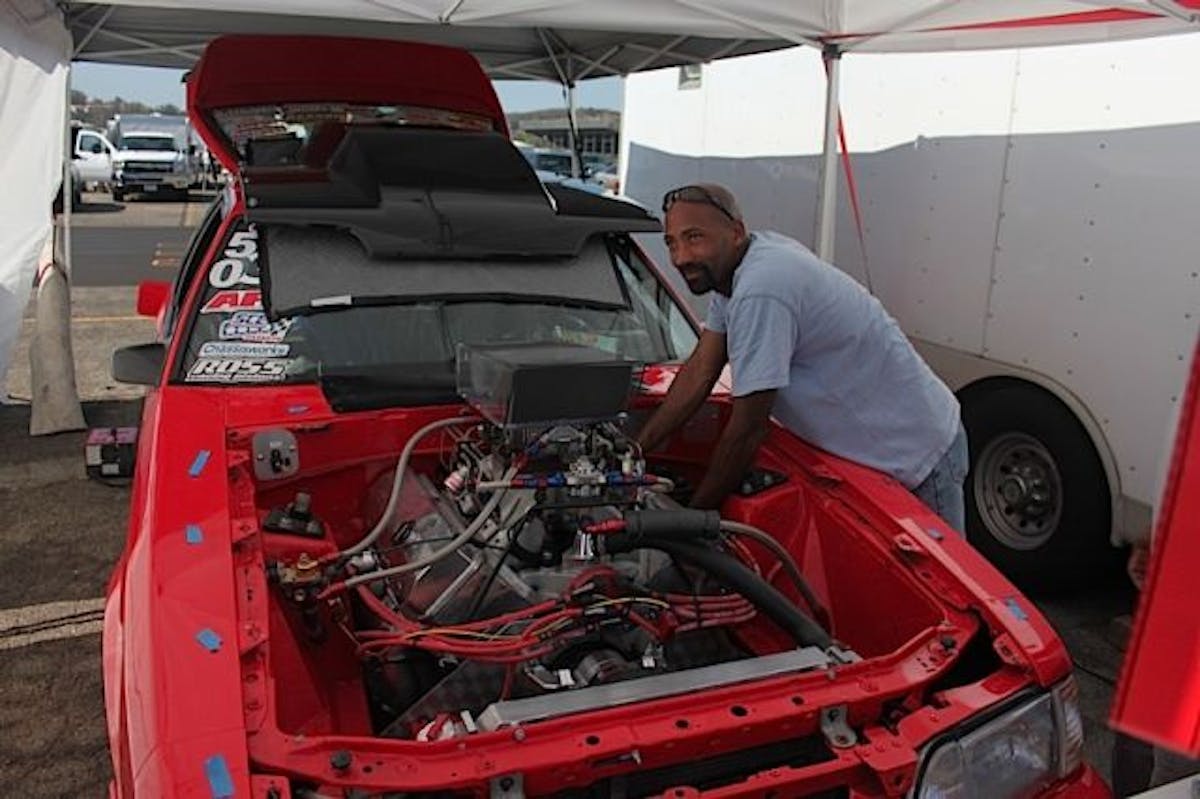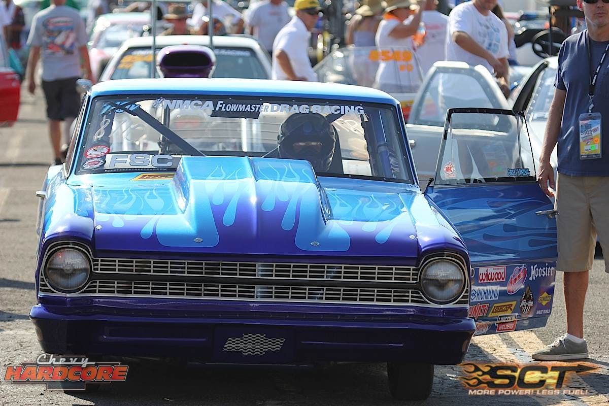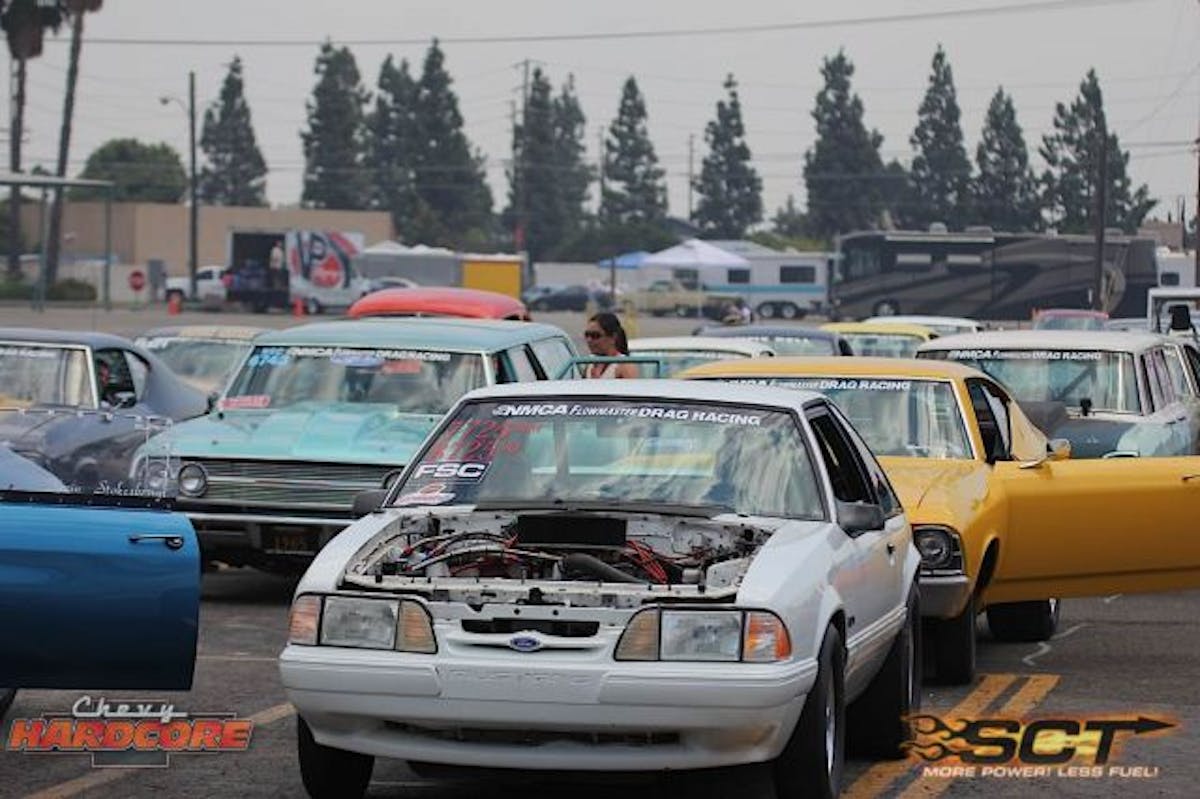 Racers have already begun making passes at this legendary track. We'll be going through today with a complete round of test and tune.Check out this '66 Chevelle belonging to Mike Boulier out of San Clemente. Mike claims that his fortified BBC is docile enough to be a daily driver, but ferocious enough to dominate True Street.Al Jimenez was running an F3 Procharged BBC under the liftoff front clip of his '72 Camaro. Jimenez was pretty tight-lipped about the details of his setup, but he was able to tell us that he has swapped out the Crower rockers for a set of Jesel units, after they consistently kept breaking at Bakersfield.Ryan "Toaster" Jones brought his low 7-second '65 Nova to the Pomona battlefield. We caught up to him in the pits where he just finished up some last minute tweaks.