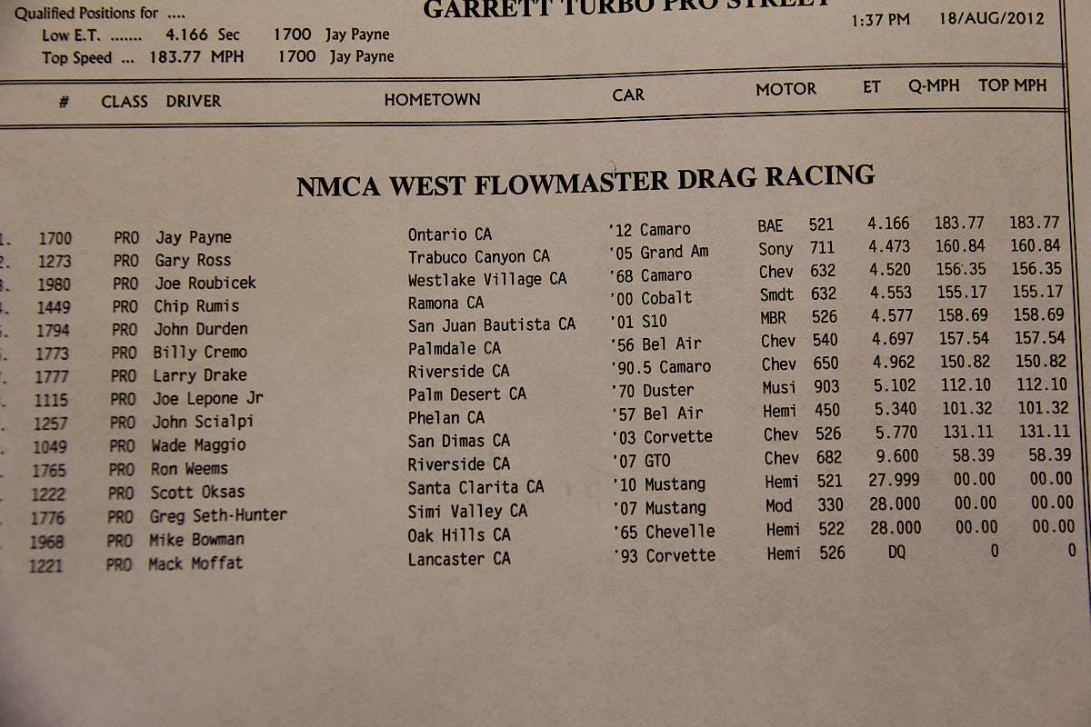 Unfortunately, Ryan Toaster Jones was unable to keep up the pace. Toaster's Nova unexpectedly blew a burned a head gasket and was unable to make the second round of eliminations. We'll see him in a couple weeks in Arizona, he'll be back.