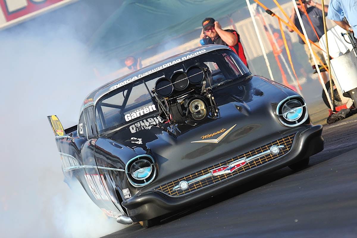 Pro Street's John Scialpi, a Phelan, California resident took the light away from Joe Lepone Jr in his ’57 Bel Air. Scialpi’s win light took him all the way to victory and managed a blazing 4.05 at 182 mph against Lepone Jr.’s 4.20 at 175 mph. Scialpi wins the Wally.The finals were tough during Outlaw 8.5. With Mark Washington against Cedric Washington, it was for sure a win for Washington. Wait, I know it’s confusing. Mark Washington cut a .057 light against Cedric’s lazy, .0164. Mark Washington was able to keep up the distance, taking the win and the Wally with a 5.44 at 134 mph.Drag Radial finals threw in Artis Houston's '71 598-inch Nova against the consistent Kevin Jones and his ProCharged '86 Camaro. Jones go the hole shot and was able to keep the lead with a final time of 5.01 against Houston's 5.07. Wow, talk about a close finish. Jones grabbed up the Wally for finals.Talk about a man on a mission. Jimenez began the weekend as top qualifier for the True Ten.5 class and essentially dominated the entire weekend, even after battle some tire slip. Eventually, Jimenez saw Snavely during the final round. Unlike most of the True Ten.5 class, Jimenez's leaf spring car is confusing to watch during the launch. While most cars squat, Jimenez's Camaro stiffens up, lifts the front and went for the win. Even though Snavely snagged the hole shot, Jimenez was able to come around for the win and the Wally. Jimenez went 4.88 against Snavely's 4.97.