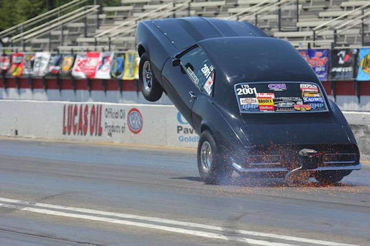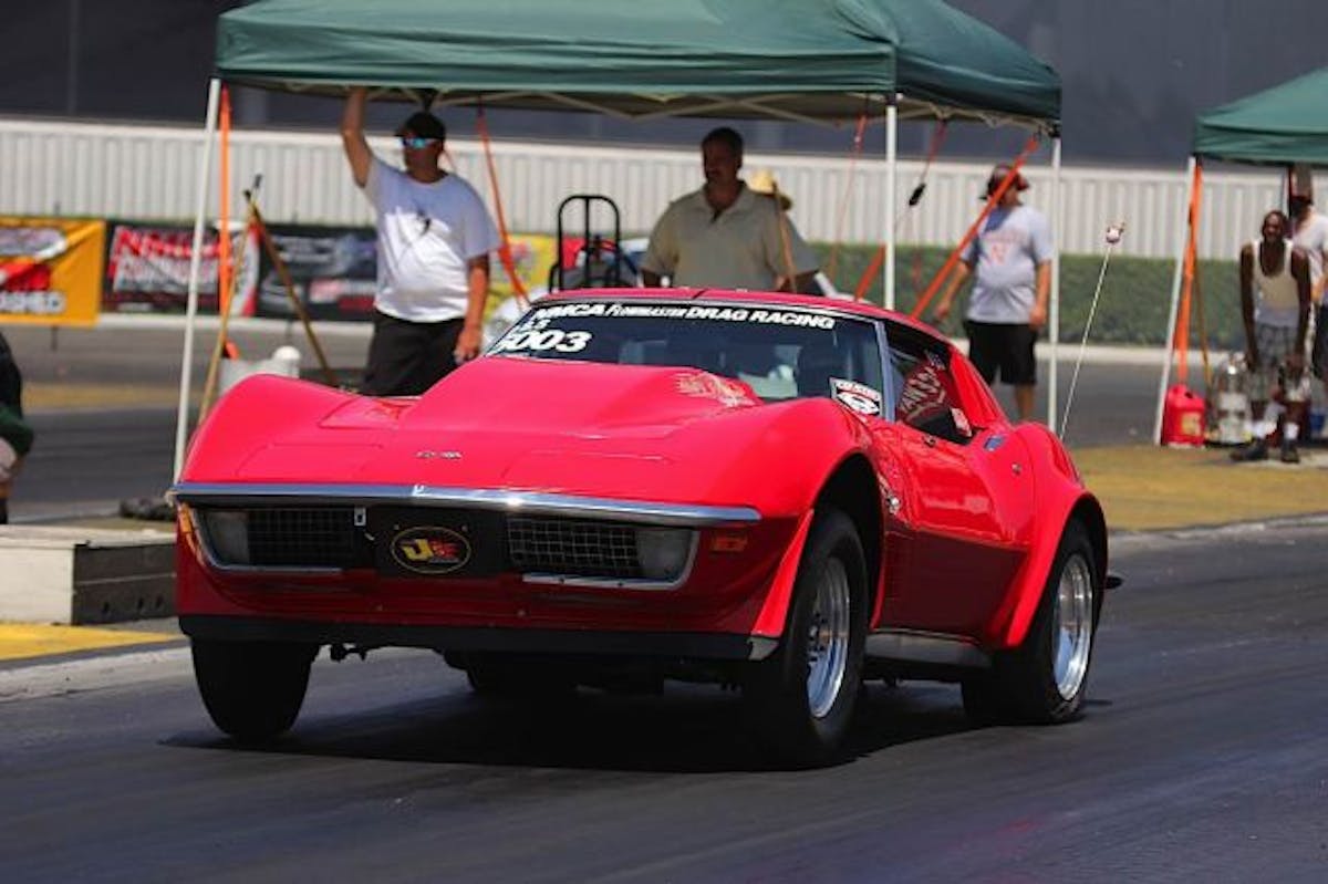 Larry Drake set up for the go during his first round of eliminations. However, Drake's 5.24 at 157 mph was not enough compared to the his opponents 4.18 at 177 mph.Chip Rumis, who we previously mentioned was successful in applying a window sticker, just went 4.52 at 155 during his first round of eliminations. Rumis managed the lead and will advance to the next round of eliminations.Russ Delia out of the True Ten.5 class put on a show by riding out his bucking '68 Camaro. What started as a mild wheel stand ended up with the Camaro completely riding out the bumper. This run put on quite the show, although we don't think the oil pan was as excited.Al Jimenez was having some issues with spinning the tires, however, he still managed to go 4.76 at 155 mph. Jimenez has told us that for his next round of eliminations, pulling out some timing will help keep the tires in check.Again, Mike Saiki proved to stay on top. This round Saiki's '72 'Vette went 5.520 at 133 for the win against Cameron Hensley's '02 Camaro.Van Tol's '64 Chevelle took the light against Mark Washington; however, it wasn't enough. Washington came around Van Tol with a 5.39 at 134 mph. Washington advances to the next round.
