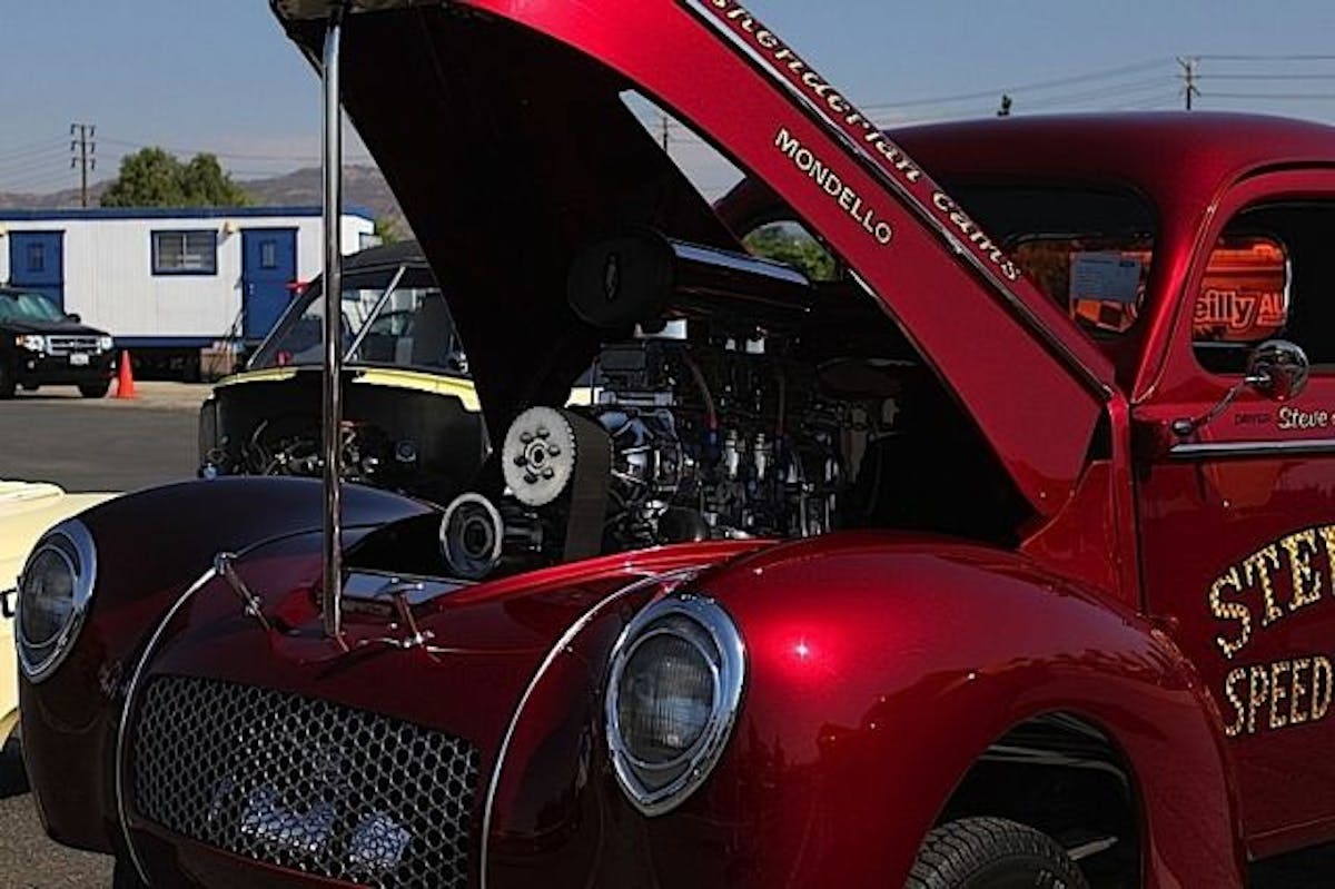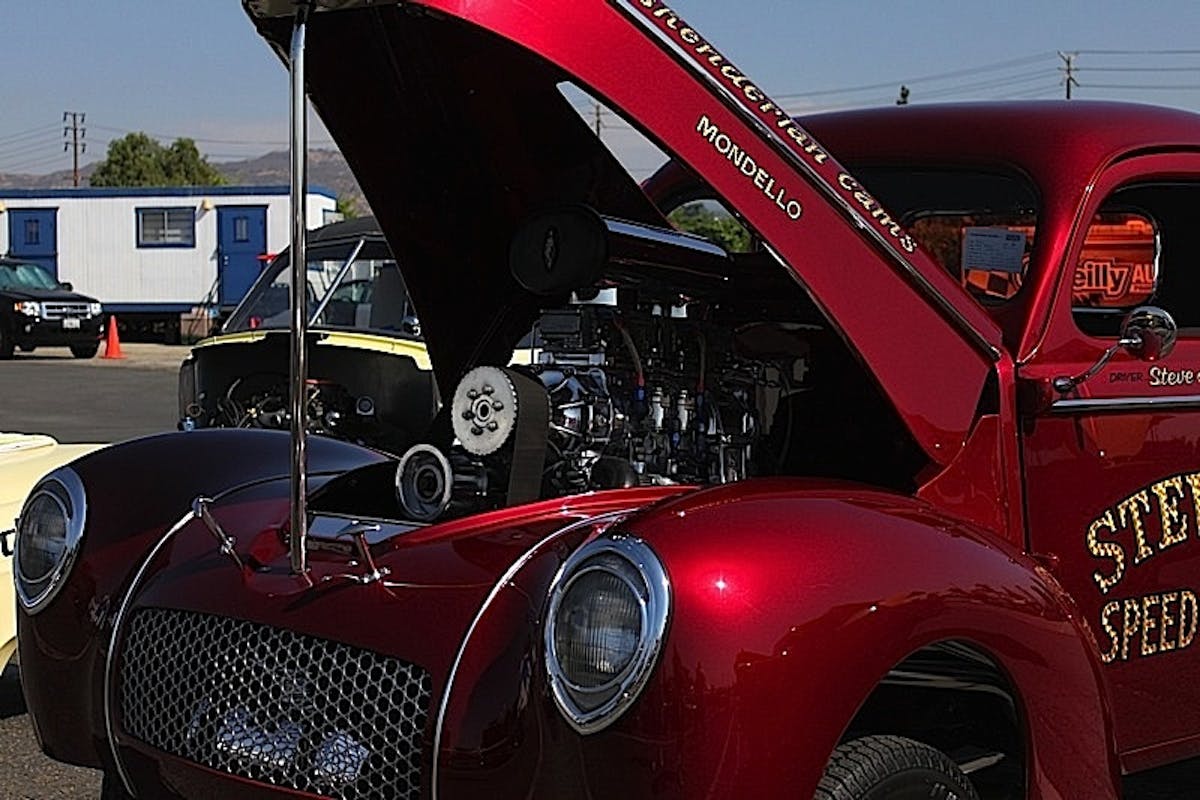 Here's Steve Jarvis' '41 Willys pickup packing 427ci. of blown Chevy Big Block. The BBC is backed by a TH400 and a 9-inch rear. Though it's a nod towards the nostalgic race cars of yore, Steve made the trip from Covina, CA to partake in Saturday's show instead. Cars of all makes and models, from new to old were well represented in the NMCA show n' shine on Saturday.Nostalgic drag cars were out in force on Saturday, although most of them were more interested in collecting show trophies.We spotted this clean '64 Chevelle with the perfect stance in the show area. We weren't able to catch up to the owner, Jan Speer, to found out more detail for press time, but we took the time to admire it anyway.