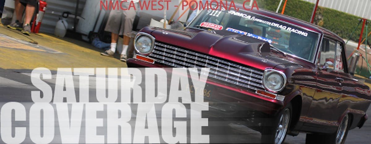 We're already on our way to a great day of racing here at Pomona for the NMCA WEST Series race. The heads up classes have just been called, including the Pro Street class, which will be running first.
