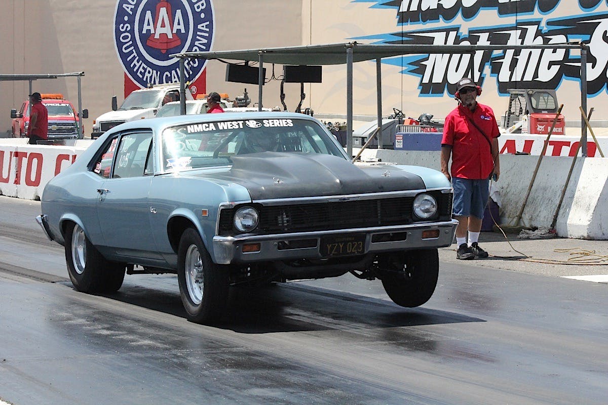 Bryan Corey was doing the deed at NMCA in his classic-blue Nova coupe. A CNC machinist by trade, he’s had plenty of experience in the ways of metalwork. Between that and the modifications he’s done to this 1970s musclecar, it’s paved the way for him to have a fun hobby in drag racing.