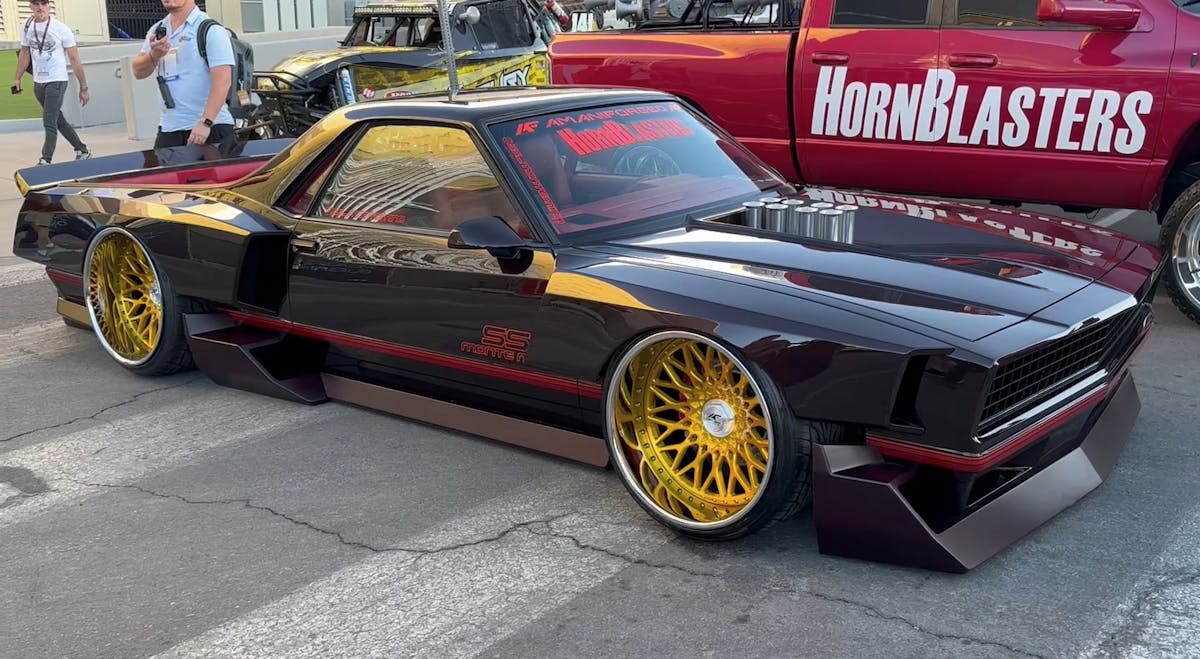 There is a lot to see at SEMA. The events, the new products, the seminars, the world-class builds… There is literally a story on every corner. That said, even the most experienced car enthusiasts will sometimes find themselves just stopping to stare. That’s exactly what happened when we walked up on the corner of the HornBlasters display and first laid eyes on this car: the SS Monte Mino
