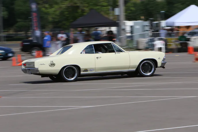 Though a little rough around the edges, Dan Rohrbach has a great story behind his 1969 Caprice. The four-door hardtop was the first brand-new car his grandfather ever bought. It was passed down to his dad and then came to sit in a barn for a number of years until Dan uncovered it two years ago and started the rebuild. Dan’s modern spin includes a 6.0-liter LS engine with a Borg Warner S475 turbo, ported heads, and an Edelbrock Pro-Flo intake. A 4L80E and 9-inch rear withstand the abuse of daily driving, road trips like the 5-hour ride it took to get to the event (from Aberdeen, SD), and countless laps around the autocross course. Dan’s Caprice barely sat still the whole weekend. Ridetech Level 2 suspension and Wilwood brakes made it a blast to maneuver around the cones and stab the brakes in the Stop Box.