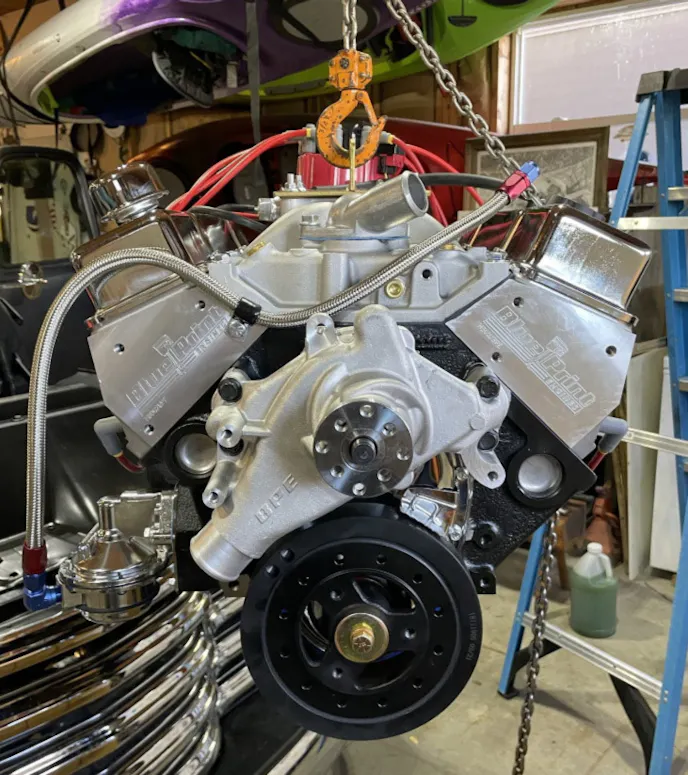 With everything bolted in place, Robert said the engine fired within seconds during its first start. He attributes the quick response to ordering the complete engine package and Blueprint’s original setup. He did modify the engine slightly with a dress-up kit to add a little touch of Chevy orange atop the aluminum heads and intake of the engine.