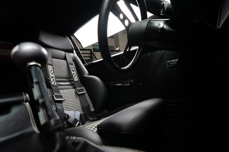 Inside, RM31 is all business but still comfortable. The cabin starts with Recaro bucket seats wrapped in houndstooth fabric, nodding to the original Camaro SS heritage while delivering real support for spirited driving. Sparco seat belts complete the look and offer safety for both driver and passenger.