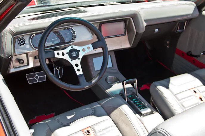 Other modifications include an Eddie Motorsports performance pulley system, a Spectra Performance air cleaner, and an MSD electronic ignition. After installing the radiator core-support, a Wizard Cooling’s aluminum radiator with SPAL electric fans was put into service, and provides ample cooling within the finished car. Feeding fuel to the big-block is a Holley fuel pump sitting inside a custom stainless-steel fuel tank. Exhaust gasses are sent through a pair of 2-inch-diameter tuned Hedman headers into a 3 1/2-inch diameter Pypes dual-exhaust system. A Bowler Performance Turbo 400 transmission links all the performance action, putting the control in the hands of a very happy owner.