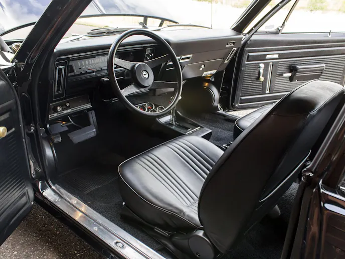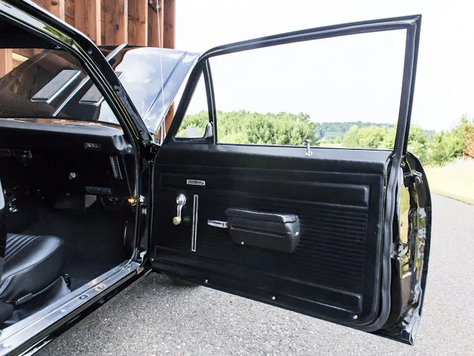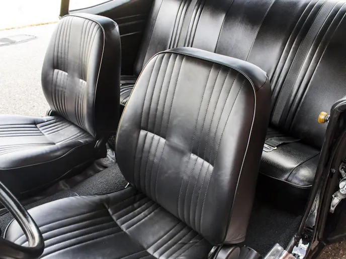 As soon as the car arrived at MCR, the crew started by removing everything from the car that was attached with a bolt, screw, or clip, and started taking care of the needed bodywork. Although the body was in relatively good condition, it was 43 years old. That means it had the usual age-related issues like small dents and dings, and even need the right front floor pan replaced. Once the body was finally ready for shiny stuff, a slathering of PPG’s single-stage paint in black that looks bottomless was applied.