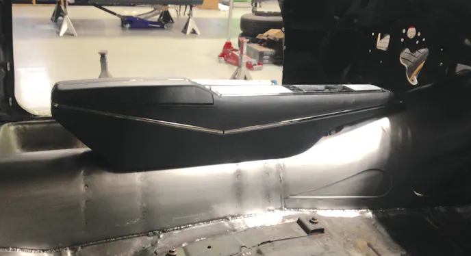 Although a new new tunnel had to be made throughout the car, the factory console is slated to remain. This time- however, a manual shifter will be present.