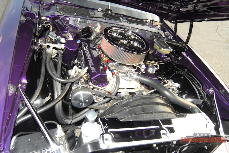 During the rebuild process, Brian decided to make sure the car was rebuilt in top-notch fashion. To that end, he started by replaced the quarter-panels, door skins, front fenders, both lower valances, and even the decklid. Basically, it’s very close to a new body. Once the metalwork was complete and the body smoothed to perfection, he then sprayed the car with a healthy slathering of a custom-purple blend of his creation.