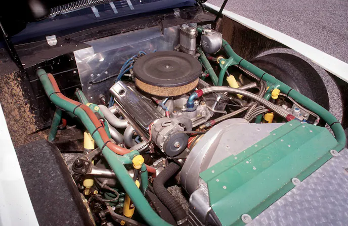 Unlike its much more comfortable factory siblings, Darrell sat on a form-fitted bucket seat and had a foam headrest during his time behind the wheel of Bertha. Behind the seat was a differential cooler, and beside that was a red lever connected to a dry, chemical fire extinguisher.