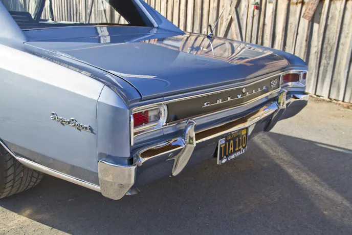 When Brian took over ownership of this SS in 1996, the 30-year-old body had to be massaged and refreshed a bit in order to bring it back to showroom standards. Fhurr Paint Werkz was tasked with the job of working out the exterior imperfections and applying PPG Mist Blue paint along with three coats of clear. All of the surfaces were then wet sanded and shined to perfection.