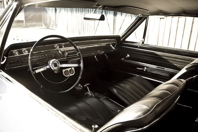 The interior of Brian’s Chevelle is in great condition, and features restored black vinyl seating, custom gauges, and an optional, center console-mounted clock.