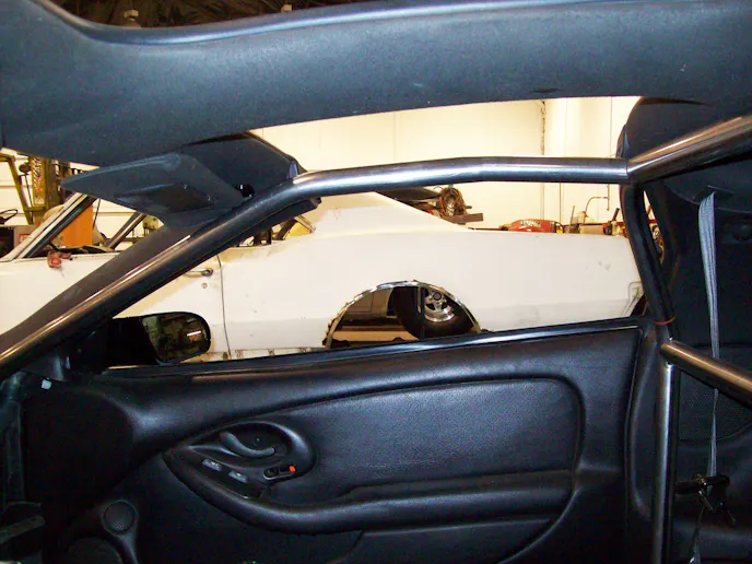 Stepping up the performance ladder, a roll cage is mandatory for any vehicle running 10.99 (6.99) or quicker or exceeding 135 mph. In any full-bodied vehicle however that maintains an unaltered firewall, floor, and body running between 10.00 and 10.99 (6.40 and 6.99) a roll bar is permitted in place of a roll cage.