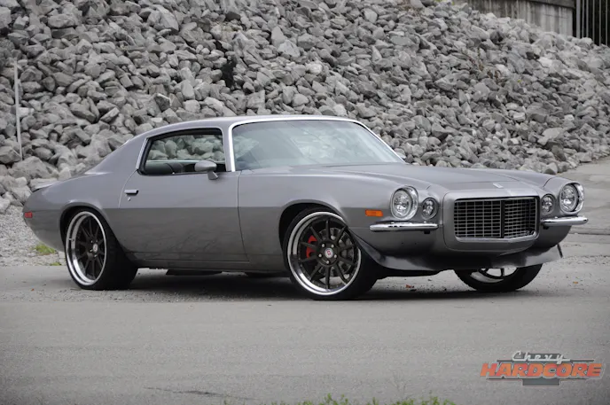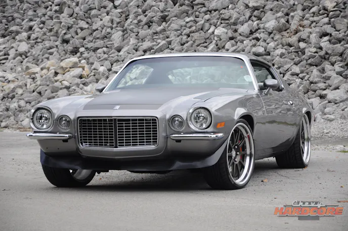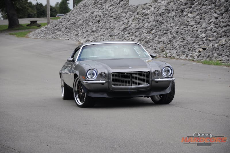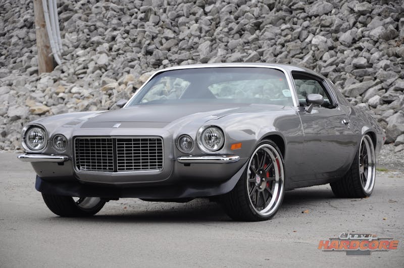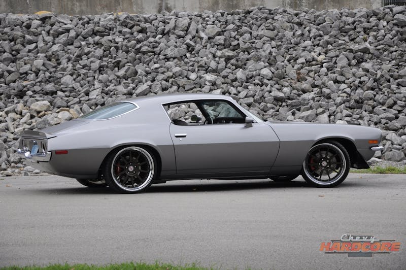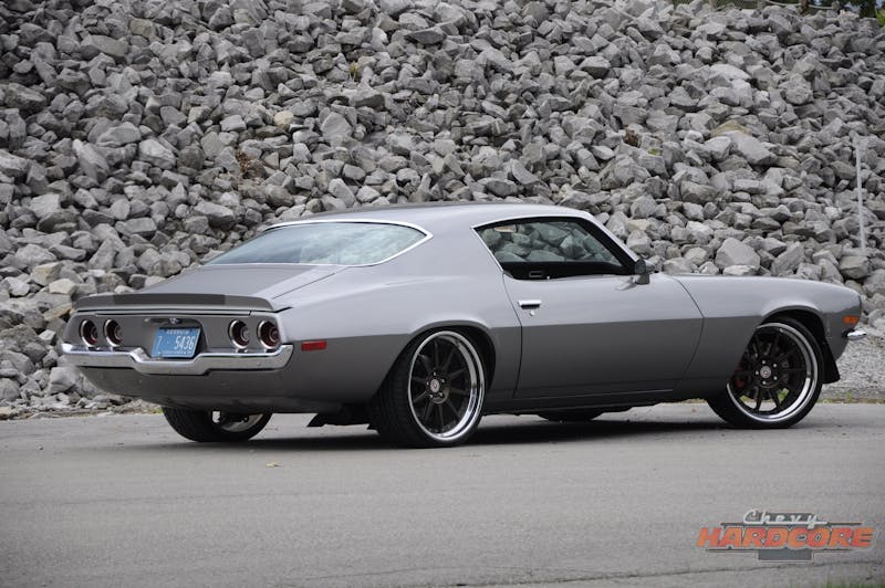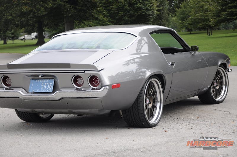 With the car coming full circle and again in Willie’s possession, the Hugger Orange paint was removed to make way for a hue at the not-so-bright end of the spectrum. This time, a slathering of Aston Martin Tungsten Silver was applied. But before the color was applied, the rear wheel tubs were widened. The plan was to build the Camaro into a Pro Touring ride, and that meant positioning some much-larger-than-stock tires under his hot rod.