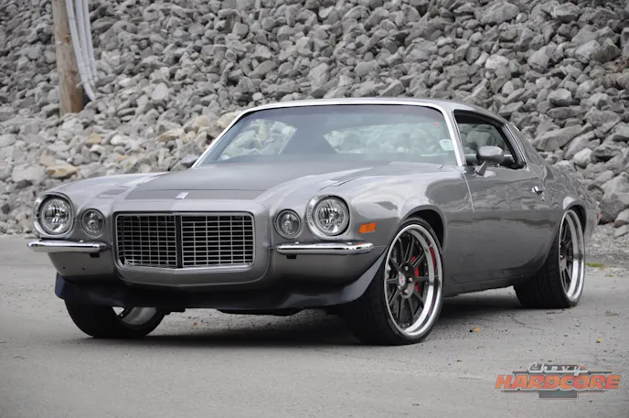 This is a Pro Touring car, and that dictates a suspension that handles the twisty roads without consequence. Since handling was to be an important aspect of this hot rod, Hotchkis suspension components were bolted to the factory subframe.