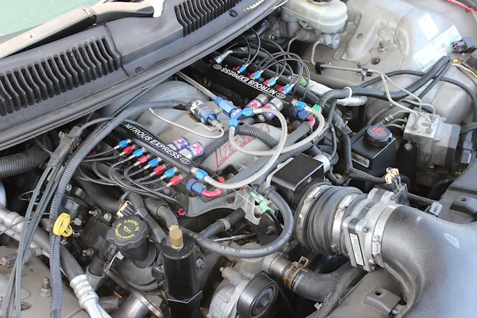 Motor: LS1, Comp Cams, FAST Intake, Nick Williams Throttle Body, Granatelli Induction, SLP MAF, Jet Hot coated headers, Nitrous Express 150 shot, Borla exhaust