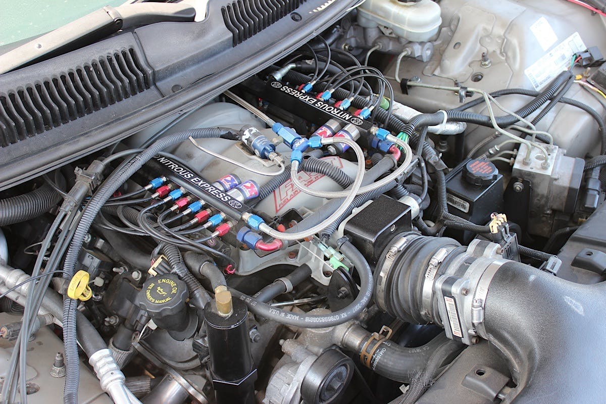 Motor: LS1, Comp Cams, FAST Intake, Nick Williams Throttle Body, Granatelli Induction, SLP MAF, Jet Hot coated headers, Nitrous Express 150 shot, Borla exhaust