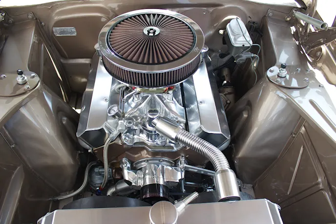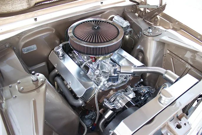 Underhood Parts: Hooker Headers, Flowmater mufflers. Quick Fuel 750cfm carb with mechanical secondaries. Edelbrock Victor Jr. intake manifold.