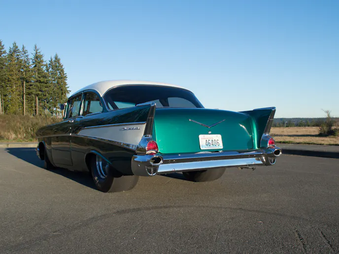 Of all the 1957 Chevrolets we have seen throughout the years, this street-legal drag car belonging to Andy Millican of Kingston, Washington, has to be among the coolest. The first thing you’ll notice about this particular ’57 Chevy, is its color. It was painted Emerald Green back in the late ’90s, and is a color that was actually a GM option at the time. When Andy bought the car in 2005, it also had a light green top, but he quickly changed that along with almost every aspect of the car. Like every car guy, he made it his own.