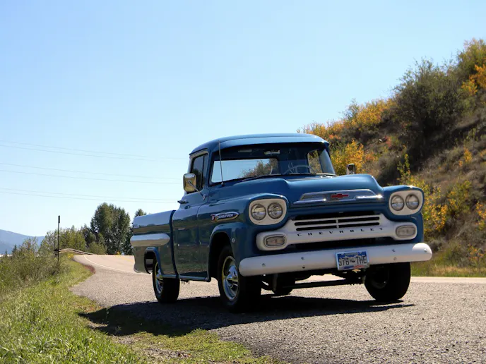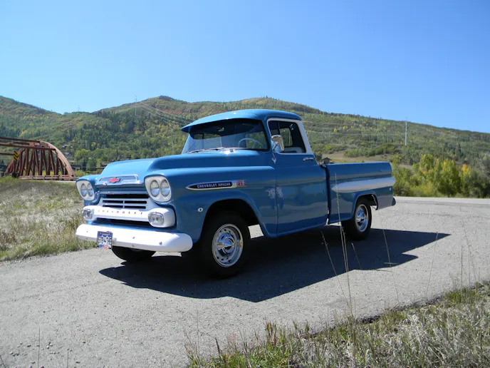 With so many crazy builds and modifications going on with vehicles in the industry these days, it’s getting more difficult to find classic Chevys that are factory-correct. Sure, these vehicles may be “stock” but their importance to the hobby is undying-They are where the industry branched from and the basis of each and every project vehicle out there. But for John Davis of Grand Junction Colorado, his numbers-matching ‘59 Apache 3100 pickup is more than just a factory-correct Chevy; it’s a family heirloom and a dream come true all wrapped into one sleek package. Obviously, we had to know more, so we caught up with Davis in Steamboat Springs, Colorado a couple weeks back for a bit of scenery, reminiscing, and of course, to check out his finer than factory pickup.