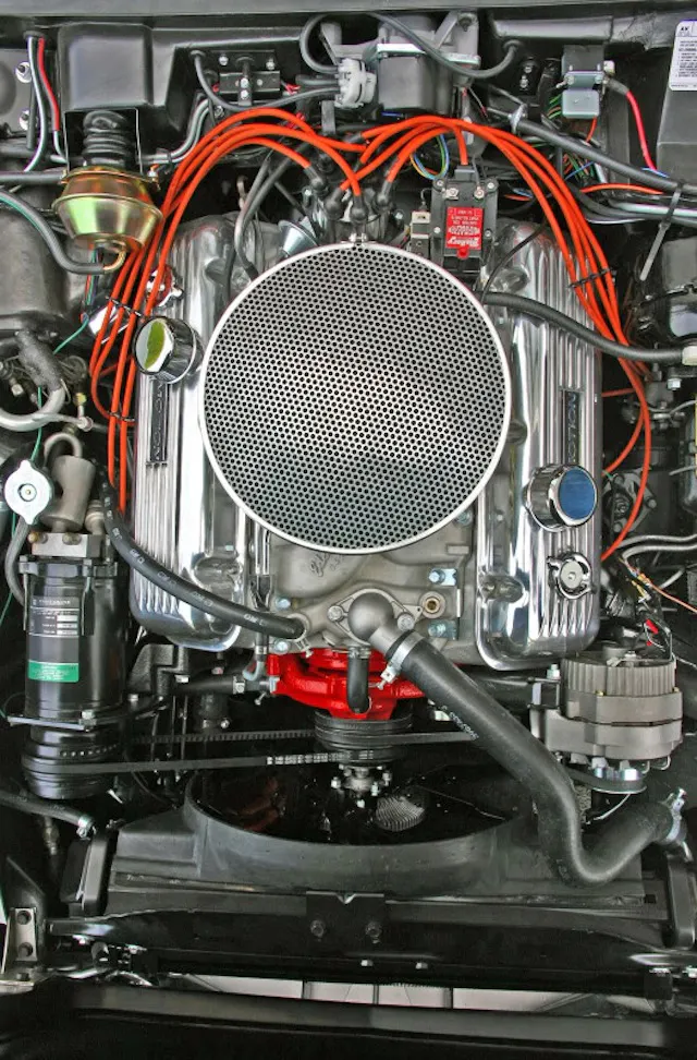 Starting with a leftover 1968 435hp coupe, Rosen installed a 500hp Phase III engine along with headers and the 1969-only optional factory outside exhaust system. A 1050cfm Holley carburetor topped a high rise alloy intake manifold and special Motion valve covers were added. Chassis mods saw new springs, shock absorbers and traction bars installed to handle the power increase.