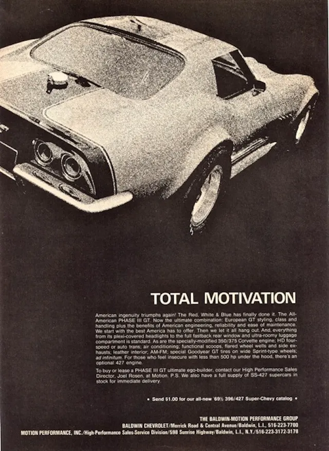 Only ten custom-built Phase III GT Corvettes were produced between 1969 and 1971. Out of the approximately five hundred Baldwin-Motion cars built between 1967 and 1974, they are among the most prized. Rosen would continue to experiment and build further on the Corvette platform, resulting in a few more unique and highly revered legends being added to the bank of Corvette folklore.