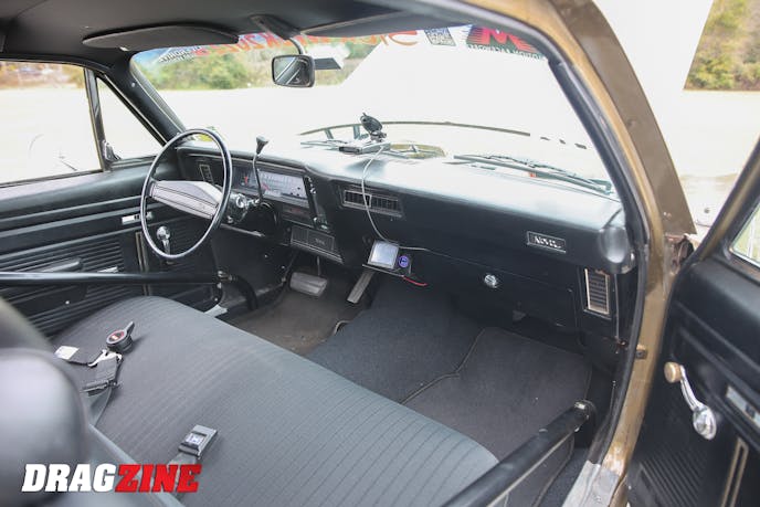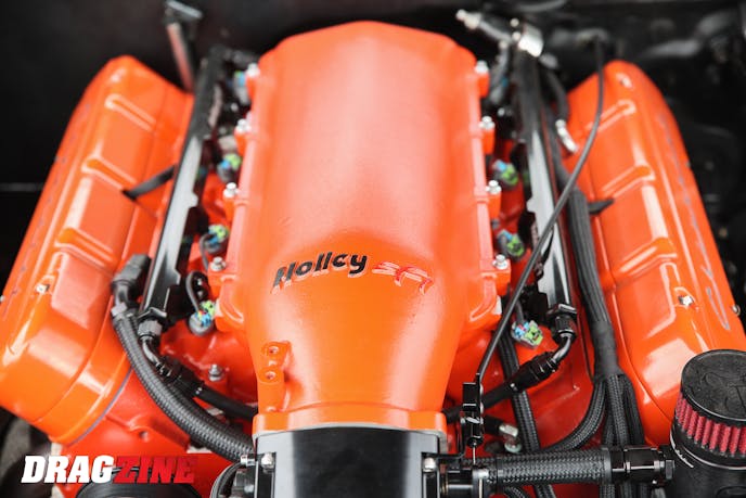 Rinehart took the lead at his shop, Boosted By Rhino, and built Drew a healthy 327 cubic-inch LS engine. The OEM aluminum block is home to a stock rotating assembly along with a Texas Speed hydraulic roller camshaft. A set of Trick Flow GenX heads and Holley Mid Ram intake finish off the engine. The engine is controlled by a Holley Terminator X Max ECU and is tuned by Rinehart. This simple combination generates 750 horsepower and has laid down a best e.t. of 9.40 at 141 mph.