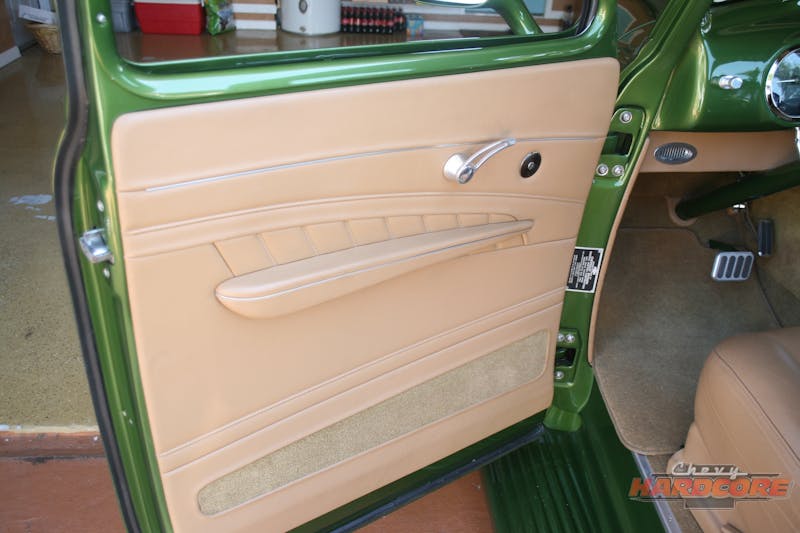 If you think the exterior looks great, the interior is another work of art. Dale’s Hot Rod Interiors of Dade City, Florida, covered the modified 2003 GM bucket seats – and the rest of the interior – with a Saddle Tan leather. Finally, cruising without tunes is akin to committing heresy, so a Kenwood sound system makes sure to please the ears.