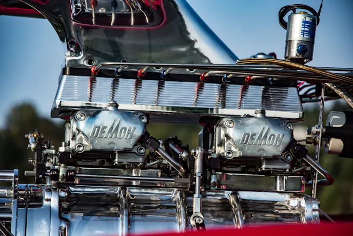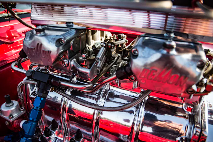 The engine itself is a thoroughly built small-block 350 cubic-incher with a roller camshaft, H-beam rods, an Eagle crankshaft, Ross pistons, and Dart 1 aluminum heads—all capped off with twin Demon carburetors, a blower, and a 300-shot of nitrous. The power is then run through a Turbo 400 transmission with a 3,200-stall converter and a 9-inch rearend with a spool and 4.56 gears.
