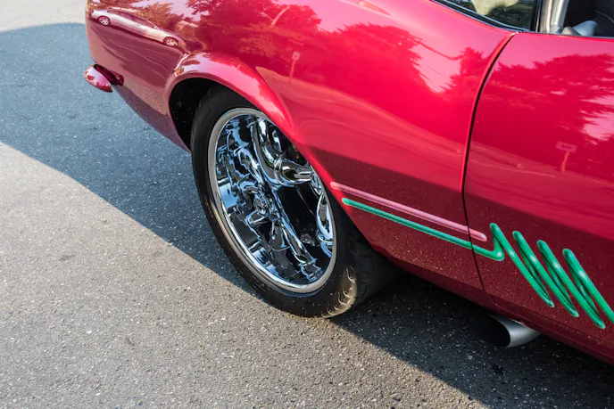 The first thing that catches your eye – after the color, graphics, and big sneakers – is the engine mounted into this badass piece of nostalgic perfection. This is the kind of car that draws a crowd wherever it goes.