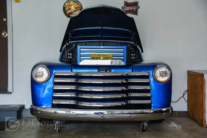 While watching an automotive television show one morning, Martin was enjoying the beauty shots he saw of the Phantom Fleetside – a custom 1950 Chevrolet pickup, built by Kindig It Design. One view was a low shot of the frontend, and Martin got a wild idea. He turned to his wife and said he’d like to make a tool box out of the frontend of a ’50 Chevy pickup. She told him he probably could, and since it seemed so simple, she suggested it had already been done.