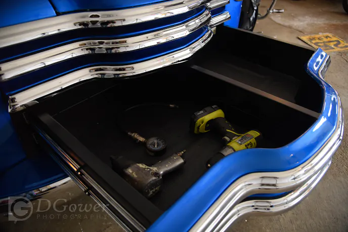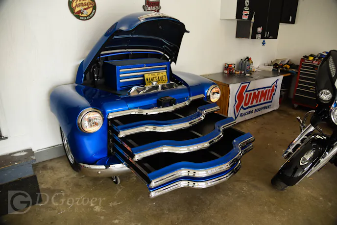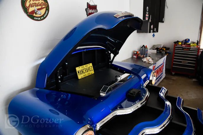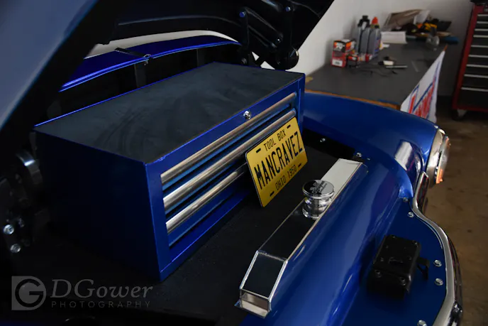 The dynamic duo at ManCravez wanted to provide options that could keep the cost down for the budget-minded buyer, or add to the overall appeal and give it a unique look for the buyer who wants the top-of-the-line version. For those who want to keep a “work in progress” look, ManCravez can build a base unit for about $5,500.00. That is unfinished, with a coat of primer. The top-of-the-line model can be painted to your desired finish, with custom wheels, functioning lights, under hood lighting, a Bluetooth speaker system with an additional USB charging port, and a custom cover for the tool box.