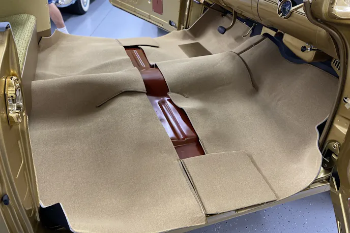 Sales manager Gina Ciadella says the project took about three months, from sourcing the materials to restoring the seats and creating door panels, sun visors, headliner, and carpet.