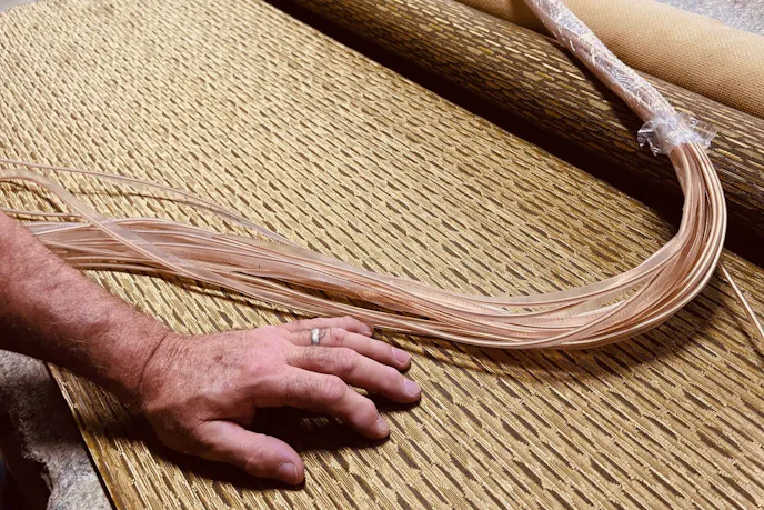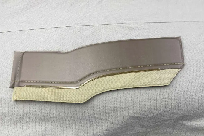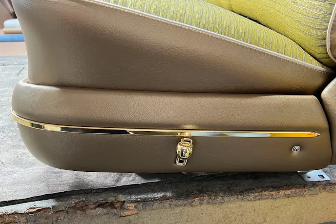 “We tried to get as close to the pictures as we could without having pictures of the actual material,” Gina says. She ultimately found the cloth at SMS Auto Interiors in Canby, Oregon, where owner Doug Pollock was able to provide the proper fabric. Gina says the 70-year-old material was in great shape. It was firm, heavy-duty fabric that was easy to work with.