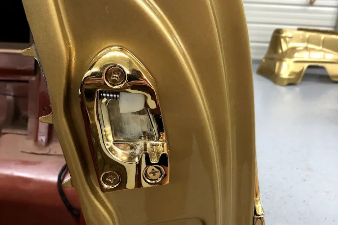 Every surface of the Tribute '55 received a gold hue in some form. Small screws for painted surfaces were painted, while screws holding gold-plated trim were also coated with real liquid gold plating.
