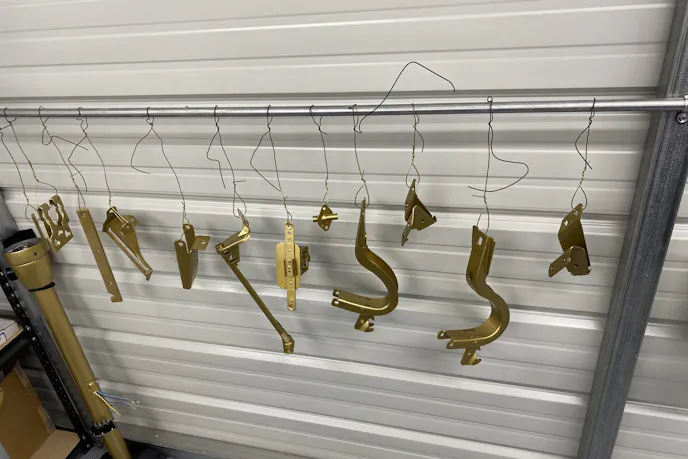 Completing the gold plating took more than three weeks of 10-12 hours days, Omar says. Plating some of the bigger pieces meant getting friends with larger plating tanks to help. Plating the small pieces, though, took several steps. Omar says he had to make a jig, drill various sizes of holes in it, twist each screw into the jig, then take the jigs to the polisher to remove the zinc coating. That exposed the stainless, which then had to be cleaned and polished before being run through the plating process.